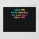 Cartão Postal Me chame de antissocial, mas por favor não me cham