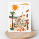 Este cartão postal da Costa Blanca, na Espanha, é uma bela obra de arte. Apresenta uma bela cidade mediterrânica antiga com casas brancas, uma rua de pedra angular, uma palmeira e um grande sol. É um cartão de boas-vindas perfeito para residentes da Costa Blanca, visitantes, turistas ou fãs.