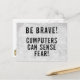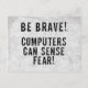 "Seja corajoso! Computadores sentem medo!" Seja você um iniciante de pc ou um geek temperado - cuide do seu computador, porque eles sentem seu medo e reagem de acordo! Quem disse que computadores são apenas máquinas? Geek bobo dizendo em fonte em apuros.