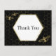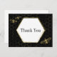 Compartilhe com o mundo sua atitude de gratidão com esta linda abelha de mel, o obrigado do padrão preto e do hexágono dourado que você escreve no postal. Padrão de corte na frente e espaço de sobra para adicionar tipo personalizado ou mensagens escritas manualmente de obrigados no verso. Esta é uma parte da coleção "Oh Honey Noir Wedding" na loja do Celebrations Studio. Há material coordenado e combinado de casamentos e noivados, artigos de papelaria e postais.