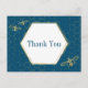 Compartilhe com o mundo sua atitude de gratidão com este lindo bebezinho teed e obrigado de padrão de hexágono dourado que você escreve no postal. Padrão de corte na frente e espaço de sobra para adicionar tipo personalizado ou mensagens escritas manualmente de obrigados no verso. Esta é uma parte da coleção "Oh Honey Wedding" na loja do Celebrations Studio. Há material coordenado e combinado de casamentos e noivados, artigos de papelaria e postais.