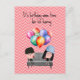 A citação na frente do cartão diz “é hora do vinho de aniversário... hic hic hurrah”