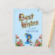 Um cartão de aniversário floral de flor de campo azul vintage com uma criança cornflower ilustrada por Penny Ross.