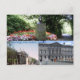 cartão-postal da Irlanda - Saudações de Dublin com vistas do busto memorial de Michael Collins em Merrion Square, GPO e estátua de Jim Larkin, Casa de Leinster, sede do Governo Irlandês. Fotos de Al Geraty.
