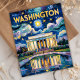 Esta pintura de Washington DC ao estilo de Van Gogh apresenta o Memorial Lincoln iluminado sob um céu noturno rodopiante, com reflexos cintilando na icônica piscina do Capitólio. A pincelada impressionista evoca o clima de Noite Estrelada, enquanto tons vintage e texturas retrô criam uma visão nostálgica de um dos marcos mais visitados da América.