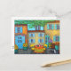 Cartão postal de uma cena de pintura colorida de uma pequena mesa encantadora para 2 pessoas na Pitoresca Provença, França por Lisa Lorenz