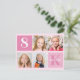 Convite de aniversário quadrado de 4 fotos fofo para uma menina. Celebre o aniversário do seu filho com 4 fotografias adoráveis deles neste cartão postal com foto adicionada por você com lindos quadrados rosa. Adicione o nome e a idade deles.