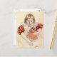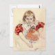 Vintage Carl Larsson desenhando uma criança sueca loira segurando uma boneca vestida de inverno.