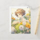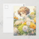 Cartão Postal Menina de Anime em Flores Amarelas Aniversário Per