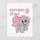 Cartão Postal Menina de Aniversário Elefante Bebê Rosa