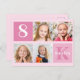 Convite de aniversário quadrado para 4 fotos para uma menina. Celebre o aniversário do seu filho com 4 fotografias adoráveis deles neste cartão postal com foto rosa bonita. Adicione o nome e a idade deles.
