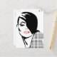 Ótima ilustração do vetor de retrorreflector feminino em preto e branco. Uma bela cara de mulher com lábios cor-de-rosa pontilhados com cachecol e cabelo curto. Diversão e tendências