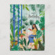 Cartão Postal Menina leitora atenta de plantas de estufa azul