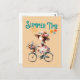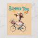 Cartão Postal Menina no Bicicleta com Flores no Verão