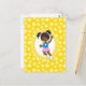 Este design apresenta uma menina Afro-Americana saltando em uma casa de bounce com roupa rosa e azul, meias e cabelo em tranças em um fundo amarelo caprichoso.