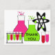 Rapariga Sobre obrigado de Ciência que você faz o cartão postal com tubos de teste, bakers e uma área que você pode adicionar um obrigado ou deixar vazio e escrever uma mensagem manualmente. A parte de trás também tem uma garota no casaco de laboratório e na área que você pode adicionar seu nome e obrigados especiais! Veja o convite de aniversário de ciência correspondente!