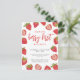 Convite de cartão postal para o primeiro aniversário de morango Berry. Personalize com os detalhes do seu evento. Itens correspondentes estão disponíveis. Ilustrações da própria artista. Entre em contato para personalização e pedidos especiais. © Zoe Chapman Design