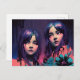 Cartão Postal Meninas de Cabelo Roxo Vestidas de Rosa