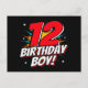 Este design de aniversário de 12 anos é perfeito para uma festa de aniversário com tema de super-herói! Ótimo para qualquer menino de 12 anos que ama super-heróis de quadrinhos ou vilões com superpoderes! Recursos de aniversário de 12 anos 'Menino de 12 Anos!' citação feliz aniversário em um tema de super-herói de quadrinhos que o menino de 12 anos vai ADORAR!