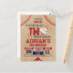 Pronto para uma festa de aniversário esportiva legal? Este design apresenta um fundo branco clássico pintado à mão, texto azul-marinho e vermelho, uma bola de beisebol, estrelas, um capacete com ilustrações de taco e bola, tipografia "Hitting the big one" e "Swing over". Todo o texto é editável neste cartão-postal econômico e convites de aniversário de futebol também estão disponíveis! Encontre itens correspondentes na minha loja. Este design é para qualquer idade, neutro em termos de gênero e é totalmente personalizável para 1º aniversário, 2º aniversário e crianças mais velhas. Encontre itens correspondentes na minha loja.