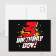 Cartão Postal Menino de 3 Anos de Idade Festa de Aniversário Sup