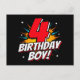 Este design de aniversário de 4 anos de idade é perfeito para um tema de festa de aniversário de super-herói! Ótimo para qualquer menino de 4 anos que ama super-heróis de quadrinhos ou vilões com superpoderes! Apresenta citação de aniversário de 4º aniversário 'Menino de Aniversário 4!' feliz aniversário em um tema de super-herói de quadrinhos que o menino de aniversário super de 4 anos de idade vai AMAR!