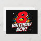 Este design legal de aniversário de 8 anos é perfeito para um tema de festa de aniversário de super-herói! Ótimo para qualquer menino de 8 anos que ama super-heróis de quadrinhos ou vilões com superpoderes! Apresenta a citação de aniversário de 8 anos 'Menino de 8 Anos!' feliz aniversário em um tema de super-herói de quadrinhos que o menino de 8 anos vai ADORAR!