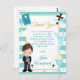 Lindo design de menino moreno azul de primeiro comunhão santo com fundo de listras azuis e confetes de folha dourada. Gráficos por Mujka e KlouiseDigiArt no Etsy.