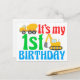 Cartão Postal Menino no 1º Aniversário Veículo de Construção Fof