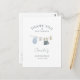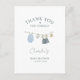Nosso belo cartão de agradecimento apresenta uma encantadora ilustração em aquarela de roupinhas de bebê penduradas em um varal. Cada peça é pintada com carinho em cores pastéis suaves, criando um design emocionante e elegante que define perfeitamente o tom para celebrar a chegada de um menino precioso.