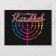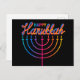 Cartão Postal Menorá de Feliz Hanukkah Neon