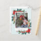 Feliz Feriados! Envie um cartão postal de Natal engraçado (ou não) com uma mensagem. A design apresenta uma tradicional flor de Natal vermelha, a aquarela, com bagas de inverno, agulha de pinheiro e verde sobre um fundo aqua. Personalize com sua foto, mensagem, nomes e endereço de retorno favoritos. Itens correspondentes disponíveis.