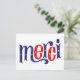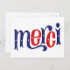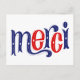 Obrigado em francês. Cartão postal da língua francesa com palavras francesas para obrigado (merci).