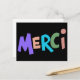 Obrigado em francês. Cartão postal em francês com palavras em francês para o obrigado (merci).