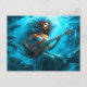 Cartão Postal Mermaid Playing Guitar Underwater Fantasy Painting