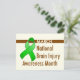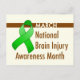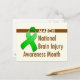 De acordo com os Centros de Controle e Prevenção de Doenças (CDC), lesões cerebrais traumáticas (TBI) levam mais de 50.000 vidas anualmente e desabilitam permanentemente mais de 80.000. Neste design, o texto "Mês de Sensibilização para os Lesão Cerebral Nacional em março" acompanha uma fita verde que acrescenta um tom ativo e acessível à mensagem subjacente de conscientização e prevenção. A faixa verde de conscientização nesta design também está disponível em itens por si só. Escolha sua cor de fundo favorita e faça parte da arte!