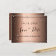 A Save the Date Card for a 70 festa de aniversário for a cara, cara, macho. Um fundo metálico de bronze em falso decorado com bolhas e uma fina estrutura preta. Modelos para uma data e nome/idade 70. Letras pretas coloridas. O texto: Salvar a Data é gravado com um script de estilo com letra de tendência grande. Volta: bronze falso, fundo marrom com algumas bolhas. Dica: Se você não quiser que pareça um cartão postal, clique em personalizar, vá para o verso e remova o divisor e o carimbo de posto.