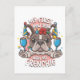 Esta é uma imagem cartoonesa de um Bulldog Francês num humor de celebração. Parece estar celebrando o primeiro ano novo com o dono.