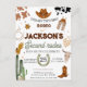 Prepare-se! Preparado para uma festa de aniversário de rodeio de cowboy? Este design apresenta itens temáticos de cowboy, como chapéu de cowboy, ferradura, cactos, caveira e um padrão de couro de vaca ou impressão de vaca. Todo o texto é editável neste convite de aniversário temático de cowboy de tons neutros! O design é neutro em termos de gênero e adequado para meninos ou meninas e é totalmente personalizável para 1º aniversário, 2º aniversário ou crianças mais velhas. Encontre itens correspondentes na minha loja.