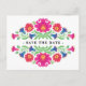 Um belo estilo mexicano floral Salve o cartão postal Data. Esta design faz parte da "Coleção de Casamentos Florais Mexicanos". Consulte os outros itens nesta coleção para obter um conjunto de convites perfeitamente coordenado.