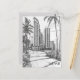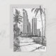 Este viagem, no estilo de desenho desenhado à mão, mostra uma vista dos skylines de Miami.
