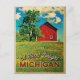 Um charmoso design de tingimento de vintage apresentando um campo de flores silvestres e um maravilhoso e velho celeiro vermelho na zona rural de Michigan. Essa imagem amável do país diz "Um prazer rural, Michigan"