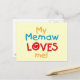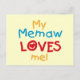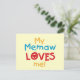 Meu Memaw me ama T-shirts, fatos-chave, cartas, adesivos, sacos para cartazes, ímanes, adesivos e outros Dons me ama, e me ama com um design de texto azul, vermelho e amarelo.