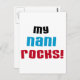 Minhas camisetas Nani Rocks, cartões, adesivos, sacos de tote, ímãs, botões e outros itens com um design de texto preto, azul e vermelho. Estes itens do My Nani Rocks são uma forma excelente de mostrar o seu amor pelo seu nani especial!