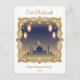 Cartão Postal Minimal Blue & Gold Mosque Skyline Eid Mubarak