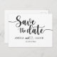 Elegant and simple wedding save the date postcard. This minimalist design features beautiful hand-written style calligraphy in classic black, perfect for modern weddings. Easily customisable with your unique wedding details, this chic save the date card is ideal for couples seeking a timeless and sophisticated announcement. Perfect for minimalist, elegant, and contemporary wedding themes, this stylish postcard sets the tone for your special day.