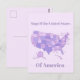 Cartão Postal Minimalist United States Map Pink Purple Art
