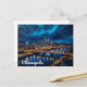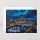 Celebrate the "City of Lakes" with this stunning, artistic postcard featuring the Minneapolis, Minnesota skyline. The unique painted effect highlights the downtown buildings reflecting in the Mississippi River, with bridges and highways completing the urban scene. Perfect for Minnesota locals, visitors to the Twin Cities, and art lovers who appreciate vibrant cityscapes. Use this postcard for travel greetings, as a piece of unique artwork, or for corporate mailing.