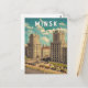 Cartão Postal Minsk Belarus Illustra Viagem Art Vintage