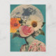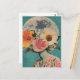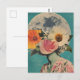 Esse cartão-postal encantador apresenta uma figura com seu rosto belamente escondida por flores florescentes, colocada contra o pano de fundo de uma lua de cheio luminosa. Misturando o surrealismo com a estética vintage e boho, simboliza o mistério, a transformação e a profunda conexão entre a natureza e o cosmos. Uma escolha perfeita para amantes de temas artísticos, celestes e florais.